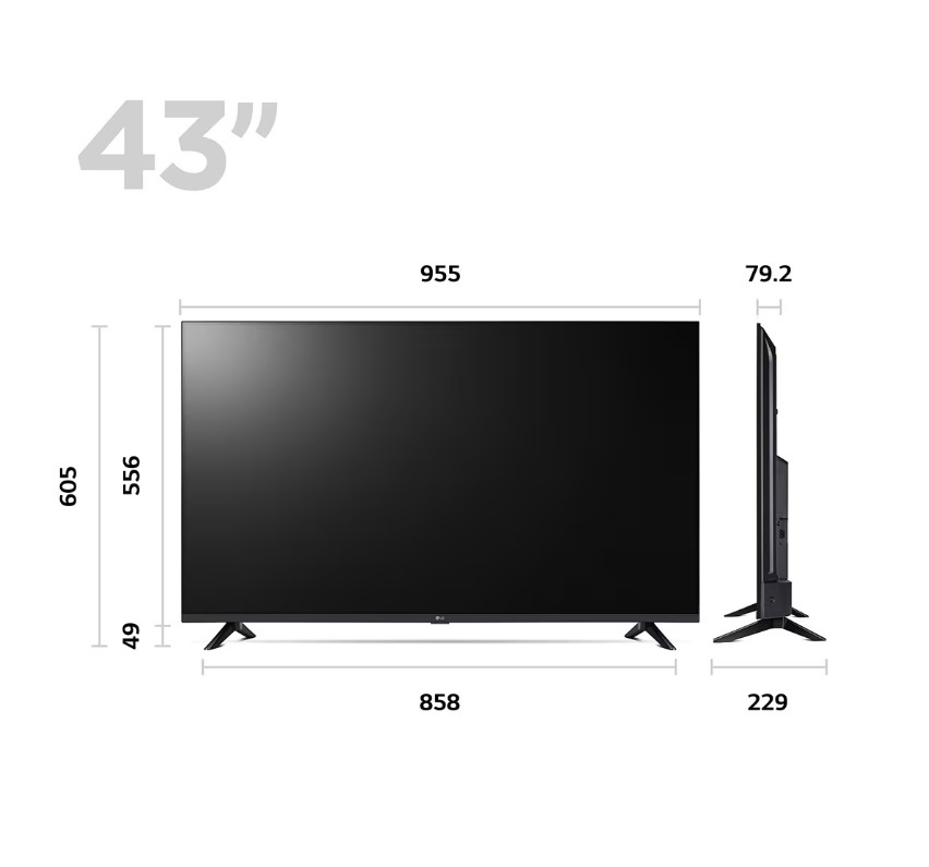 • Display: 43-inch Full HD (1920 x 1080) resolution with LED backlighting.